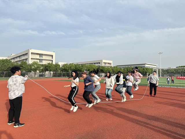 活动过程中,同学们展现出矫健的身姿,在挥舞的麻绳中,一个个跃动的身影,如同春天校园里开出的一朵朵绚丽之花。参加活动的同学满怀期待,准备迎接挑战,欢快的氛围弥漫在空气中,每个人都面带微笑。同学们在心底里暗暗打气,告诉自己这是一次锻炼和挑战自我的机会。