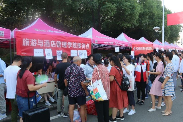 报到现场,气氛热烈,“厚德博学,经世济民”的校训精神耀眼, 学校“欢迎新同学”彩喷大字醒目。新生们带着入学材料来到我院迎新点,脸上充满着对大学生活的憧憬与期待。迎新点的班级助理耐心解答着新生及家长们的疑问,有条不紊地帮助新生办理入学手续,志愿者热情的态度和耐心的解答让报道的新生和家长深受感动。旅游类1941余智奇家长在外地工作,自己拖着行李来到学院的迎新点,学院的老师和同学了解他的情况后,安排一对一志愿者为他办理报到手续。余智奇激动地说道:“深深感受到了旅院大家庭的温暖,之前的担心和害怕一扫而光。”