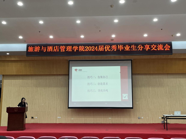 (通讯员:王永馔 余梦瑶 审核:周博)为发挥朋辈引领作用,帮助学生明晰就业形势,提高就业能力,促进学生更加充分更高质量就业,6月2日晚,学院在大学生活动中心二号报告厅举办“悦学习·跃青春”——2024届优秀毕业生分享交流会。活动邀请2024届优秀毕业生舒婷、张艺夕、侯宇康、陈康业分享求职就业宝贵经验。2022级学生及2023级专升本学生参加分享会,辅导员周博、李鸽参会。