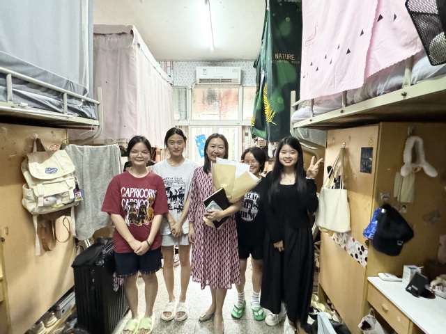 刘国武与栎四532寝室学生开展深入交流。在刘处长的鼓励下,同学们纷纷交流自己在校的学习、生活、情感等情况,推荐家乡的旅游文化胜地,畅所欲言。刘处长耐心倾听,积极融入,一一解答同学们当前遇到的困惑,与学生交流收纳技能、人际交往等生活知识。他寄语学生,大学是走向社会的演习,不仅要学习知识,更要培养做人的智慧,学会与人相处,做事主次分明。好男儿志在四方,希望同学们围绕社会需要,练就过硬本领,努力学习,努力成才。