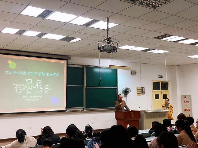 (通讯员:蔡骏昊;摄影:蔡骏昊;编辑:陈瑶)2019年11月24日晚7点,三号教学楼203教室举行旅游学院2020届全体毕业生集中大会。旅游学院副院长蒋昕、党委副书记孔军、毕业班班主任、2020届全体毕业生参加大会,会议由就业工作专职人员陈瑶主持。