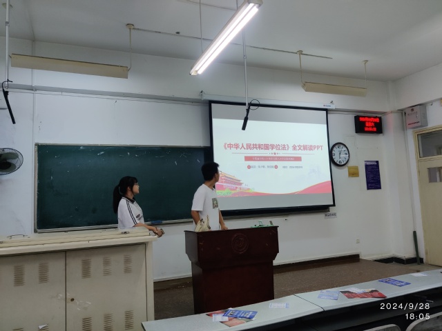 (供稿:付睿思,审核:孙浩)为充分认识《中华人民共和国学位法》的重大意义,深入领会其精神内涵,太阳集团官网8722积极响应学校《关于做好〈中华人民共和国学位法〉学习宣传与贯彻实施的通知》要求,9月28日晚讲评时间,学院组织各班学生全面开展《中华人民共和国学位法》学习活动。各班班主任带领同学们围绕学位法的修订背景、重要意义和主要条款等进行深入学习和研讨,帮助同学们全面了解学位法的精神实质。