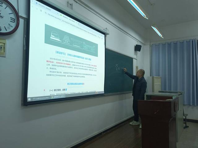 活动中,全体师生认真学习《中华人民共和国学位法》,各班班主任进行了全面的解读。通过学习《中华人民共和国学位法》让同学们更加深刻地认识到了学位工作的重要性和规范性,也让同学们更加明确了自己在未来学习和研究中的方向和目标。