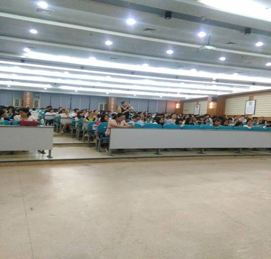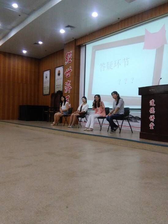 2015年5月17日晚6点半,我院在图书馆报告厅成功举办2015届优秀毕业生经验交流会,全体大三在校班级及大一大二自主报名的350余名学生参与交流会。优秀毕业生代表—来自国旅Q1141的王晓梦、李晶菁,烹饪Q1141的王娅男及会展Q1141的黄莉蓉就考研及就业两方面进行经验交流。旅游学院毕业生工作专职辅导员陈瑶老师主持交流会。