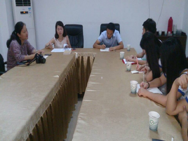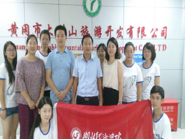 (特约记者:万庆召)“黄冈旅游资源开发的亮点和特色有哪些?”“黄冈旅游发展的主要目标是什么?”……7月14日上午,在黄冈市大别山旅游开发有限公司公司二楼会议室里,我院10名大学生在指导老师的带领下与该公司的负责人进行了详细交流。该公司总经理黄拥华就黄冈旅游产业现状、旅游资源特征、重点旅游项目建设情况作了介绍,部门有关负责人对同学们提出的问题一一解答,并提供了文字资料和有关数据。
