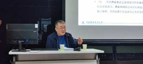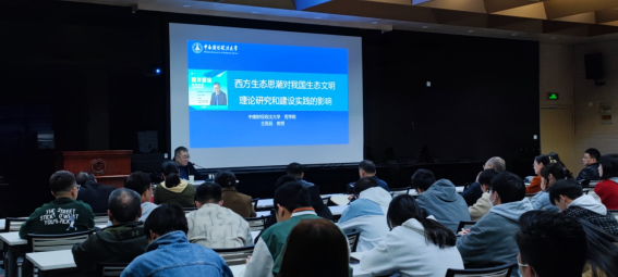 王雨辰教授长期致力于生态文明理论、国外马克思主义哲学研究,学识渊博,产出一系列非常重要的创新性研究成果。王教授在讲座中介绍了西方主要生态思潮的理论基础、生态本体论,论述了中国生态文明理论的发展逻辑,特别阐述了西方生态思潮对生态价值观的争论及其对我国生态文明理论研究和建设实践的影响。他谈到的“人与人之间的和解是达到人与自然之间和解的关键”“不能忽视技术进步对绿色发展的作用”等观点都让人耳目一新。
