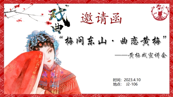 (供稿人:文超 审稿:蒋昕)经过半学期“会展项目管理实务”课程的学习与实践,4月10日上午10时,由文超老师指导、会展2041班学生小组组织的“梅问东山·曲恋黄梅”黄梅戏宣讲会在J2-106举行。宣讲会以弘扬传统文化,彰显文化自信为初衷,以非物质文化遗产“黄梅戏”为载体,经过精心的策划与组织,为全体同学奉上了一场精彩的文化盛宴。