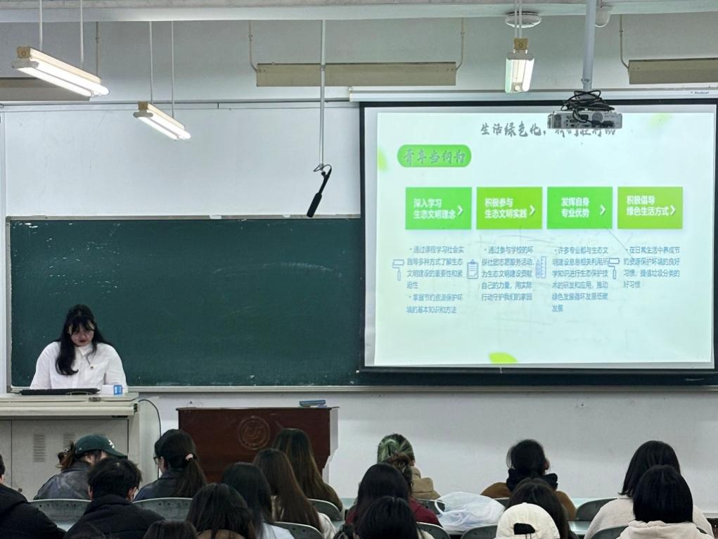 黄橙子为同学们带来了生态维护的灵秀俊美。黄同学从太阳网集团tyc8722已经开展的“低碳行动”出发,为大家讲述了近年来“大至国家战略,小至社会个人”的低碳目标,以具体案例为同学们讲述低碳生活的重要意义。同时也让同学们更深刻地了解到“双碳”目标并不一句口号,广大群众的认知普及与行动落实才能促进整个社会良性发展。她呼吁同学们以身作则,积极融入到生态保护行动中去。