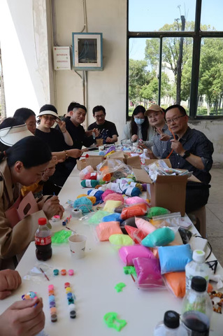 活动现场被布置得温馨而充满艺术气息。毛线钩针、超轻黏土、石膏彩绘、手链串珠、不织布等DIY项目在樱花树下依次展开,与飘落的花瓣相映成趣。参与者们不仅有本校学生,还有许多赏樱游客加入其中,共同感受手作的乐趣。“没想到赏樱还能遇到这么有趣的活动!”一位游客兴奋地说。她选择了超轻黏土制作,在组织者的帮助下,捏出了一个可爱的樱花小摆件,细腻的造型与真实花瓣几乎融为一体。