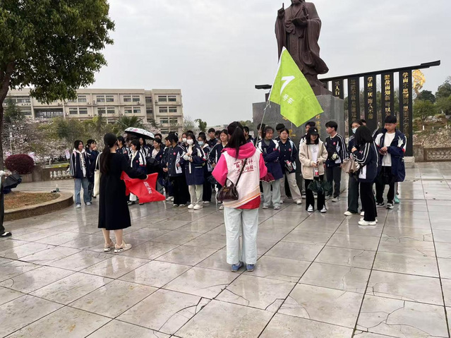 全程讲解员谢晶在为江夏一中研学团讲解孔圣园