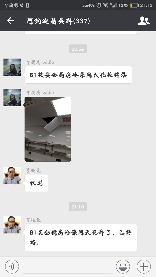 酒店有一个微信群,所有酒店员工都在这个群里,包括总经理,大家会在群里发布各种工作动态,一切都是真实展现在所有人面前的,比如下面这张图: