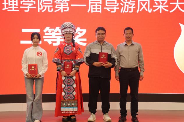经过初赛的激烈角逐,9名选手从众多参赛者中脱颖而出,决赛分为“模拟导游讲解”和“即兴问答”两个环节。选手们充分发挥自己的特长和优势,围绕黄鹤楼、西湖等景区展开深度演绎,为在场观众呈现了一场集视觉、听觉于一体的盛宴。旅游2422班罗遂翔同学凭借扎实的讲解功底和对景点文化内涵的诠释摘得桂冠。郭明月、雷金波、覃涵三名选手获得二等奖,范鹏飞、吴正宇、覃正淼、向雯瑜、杨思晗5名选手获得三等奖。