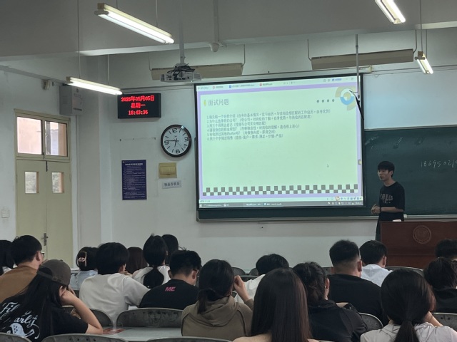 分享会后,同学们围绕简历制作、面试常见问题等踊跃提问,现场气氛热烈。班主任付睿思在总结时鼓励同学们“勇于尝试,善于总结”,并强调行动力是求职成功的必要条件。