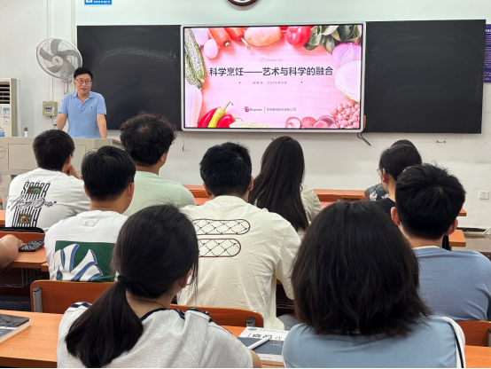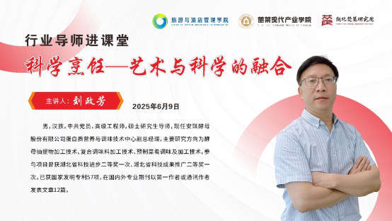 (供稿人:张芸;审稿人:蒋昕)2025年6月9日下午,我院烹饪2441班《基础营养学》课程有幸邀请到行业导师刘政芳先生。他以“科学烹饪——艺术与科学的融合”为主题,为同学们带来了一场精彩纷呈的讲座,将科学烹饪的理论与实践案例紧密结合,充分展现了科学烹饪的独特魅力。