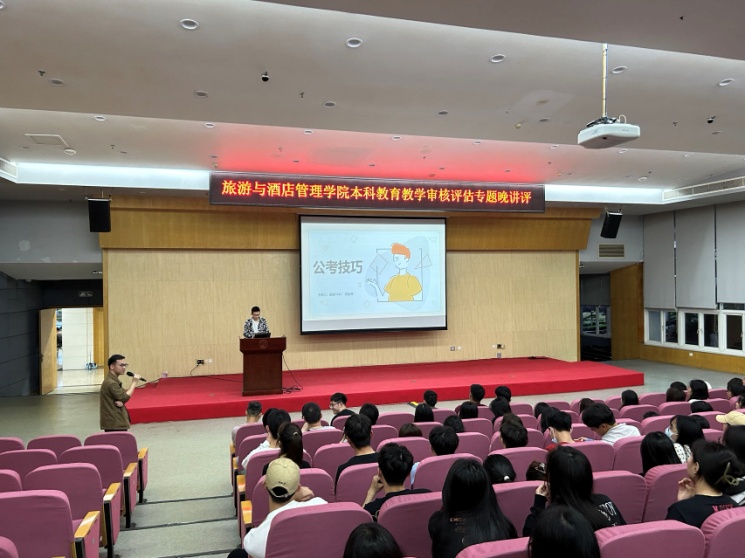 分享会按照考公、考研、求职三个板块进行。首先,向友坤同学从岗位选择、复习策略、应试技巧三个方面介绍自己国考成功上岸的经验;刘姗同学就考研经验进行了分享,谈及自身心路历程,她表示院校、专业的选择要比努力更加重要;陈立鑫同学从招聘渠道、求职经验、面试技巧等多个方面进行了分享,向在场同学介绍了求职时的阶段任务及规划。