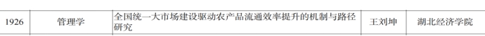 (供稿:王刘坤;审核:毛焱)2025年9月5日,全国哲学社会科学工作办公室公布2025年国家社会科学基金年度项目立项名单,我院王刘坤博士申报的课题“全国统一大市场建设驱动农产品流通效率提升的机制与路径研究”获批青年项目立项。