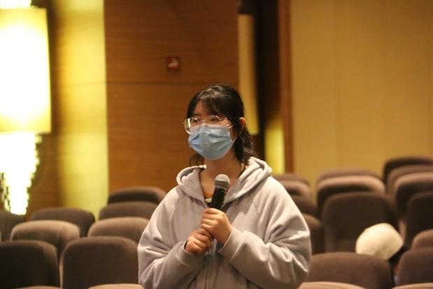 随后,宴会厅主管郑松带领大家参观了希尔顿酒店不同类型的宴会厅。同学们分成两组,分别由李阳和培训主管聂媛媛进行带队参观介绍酒店的营运区域,包括酒店的前厅大堂、健身中心、餐厅、室内游泳池、客房和户外花园等。酒店工作人员还对酒店的运营部门、模式特点、酒店规模布局、酒店功能设计等进行了详细地介绍。