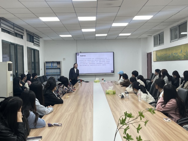 谭海平校友深耕导游行业多年,积累了丰富的实践经验和行业荣誉,近年来持续为旅游行业培养人才,并取得卓越成效。讲座中,谭海平结合自身的从业与考评经验,从考情分析、面试核心考点、评委视角建议、语言表达技巧等多个维度进行了系统讲解。她不仅分享了高效的面试备考策略,还现场进行了精彩的导游词解说示范,其生动的语言和专业的演绎赢得了同学们的阵阵掌声。在现场模拟面试展示环节,同学们踊跃参与、积极提问,谭海平对每位同学的展示都给予了细致点评和专门指导,现场学习交流气氛热烈。