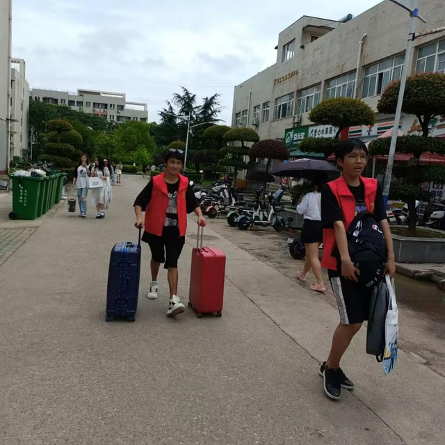当天清晨,穿着统一的红色志愿马甲的志愿者早早到达值守宿舍,精神抖擞,热情洋溢,迅速投入到行李搬运服务中。有的帮助打包捆扎,有的将行李扛下楼梯,有的将包裹搬上车辆,还有的耐心为家长指路……一趟趟奔波于楼上楼下,一个个大包小包的行李,虽然天气闷热,汗流浃背,每一位志愿者都始终面带微笑,任劳任怨,用实际行动表达对毕业生最诚挚的祝福。穿梭的红色身影,成为了毕业季校园内的一道靓丽风景,得到了毕业生及家长的一致赞扬。
