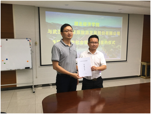 下午两点五十分,学院领导与老师抵达武汉木兰草原,在游客服务中心与木兰草原吴总、周经理、鲁主任等进行深入座谈。吴总对学院各位领导、老师的到来表示热烈欢迎,对我院实习生在校期间的实习工作给予了充分肯定,并为后期实习深入合作提出设想和建议。我院毛焱院长对旅游管理系办学历史、规模、人才培养、课程设置等方面进行详细介绍,感谢木兰草原给予学生们实习机会,欢迎企业领导到学院考察和指导工作,也希望能进一步加强学院教师与企业间的合作。邓祖涛教授对木兰草原给予学生提供高质量实习岗位表示感谢,强调实习基地建设对学院人才培养和学生未来就业的重要意义,希望未来能与木兰草原在案例大赛、红色旅游策划、大学生创新创业等方面深度合作,携手培养优秀的旅游人才。座谈结束后,我院毛焱院长与木兰草原吴总签订共建实践基地协议,并举行大学生实习实践基地授牌仪式。