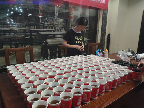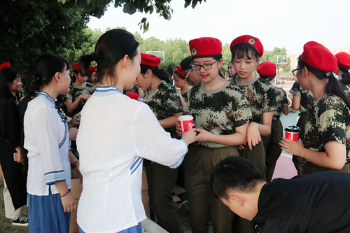 陆源茶酒文化社与烹饪与营养教育协会凭借其社团特色,在旅游与酒店管理综合实训中心为新生精心制作玫瑰花茶与酸梅汤,并进行了相关活动准备;团委学生会则对下军营活动做了具体活动方案和执行。下午三点半,相关工作准备完毕,我院团委学生会主席团及社团工作人员将饮品送至东区篮球场新生军训地点。饮品依次送至我院新生与带训教官的手中,伴随着工作人员的问候与关怀,新生们在炎热的下午感受到了丝丝“清凉”。