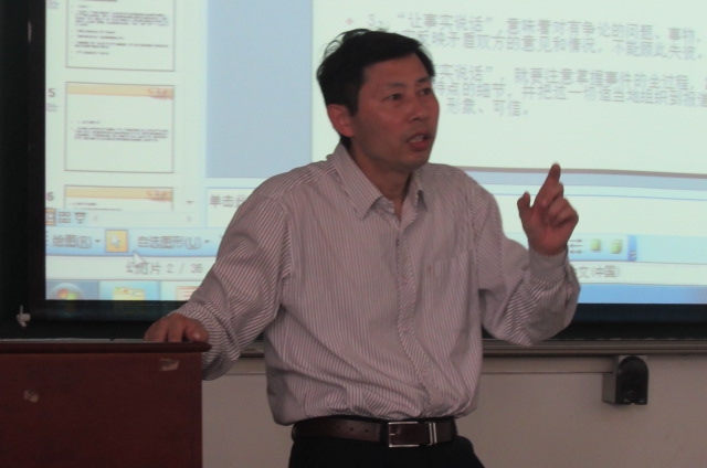 本次授课内容主要为新闻写作的基本方法。张军指出,无论是在以后的学习还是工作中,新闻写作对学子们来说都是必不可少的,同时,在新闻写作中,要注意用事实说话,从而表现人物的内心世界与思想品格,切忌参杂自身情感,并且在写作过程中要以客观视角去看待问题,切忌主观臆造。同时张军老师具体讲授了对于新闻稿、消息等这一类文体的写作,为在场学子们的新闻写作的水平的提升奠定了基础。