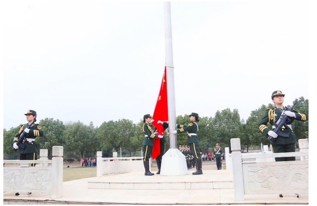 上午6点45分,参与人员准备就位。升旗仪式第一项,由太阳集团官网8722学生会团委副书记阮肸介绍到场老师;7点整,升国旗仪式进行第二项,我校国旗护卫队在进行曲中庄严护送国旗入场;第三项,升国旗、奏国歌。在庄严嘹亮的国歌声中,全体师生肃立行注目礼。