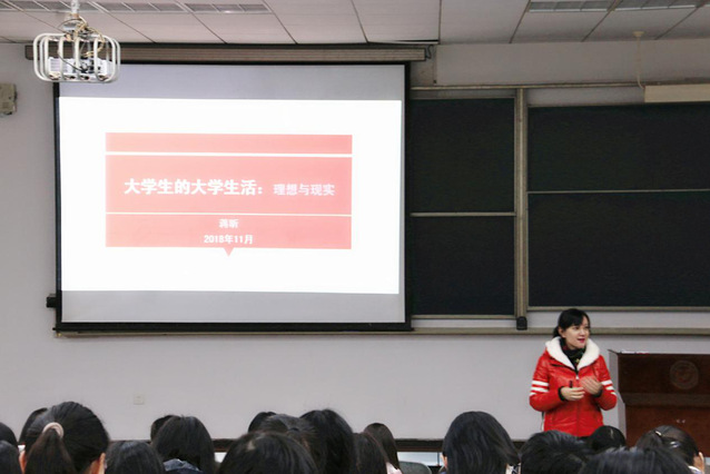 本次讲座,蒋昕老师分别从大学生生活问题的提出、分析、解决和收获这四个板块进行了讲解。首先,蒋老师在与同学互动的同时,对比了中学生活与大学生活之间的差别,幽默地引出了大学生的生活问题,并对问题进行了相应的分析。随后,蒋老师提出了大学生应当有情怀、有引领、有目标、有约束和有落实,应当在这五个方面思考自己的大学生活并充实自己的大学生活。讲座过程中,蒋老师旁征博引,引用了诸多实例为大家讲解,内容丰富,语言华丽。最后,蒋老师阐述了解决问题后所得到的收获,鼓励大家在大学四年中,应当提升自己、完善自己,努力提升自己的视野和格局。