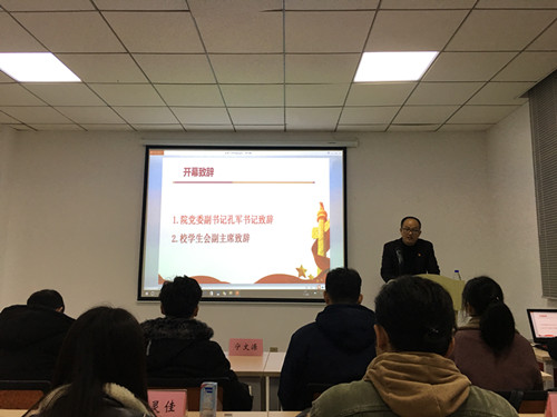 会议在主持人的宣读下隆重开幕。大会第一项,孔军书记代表我院进行开幕致辞。他希望全院同学在新一届的学生会带领下,振奋精神,努力拼搏,创造新的工作局面。校学生会副主席陈人杰代表我校校学生会发表致辞,一方面希望我院学生会与校学生会互帮互助,齐头并进;另一方面也预祝我院第一届学生代表大会圆满召开。