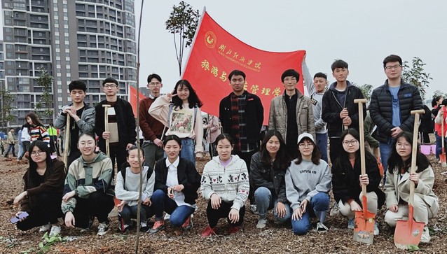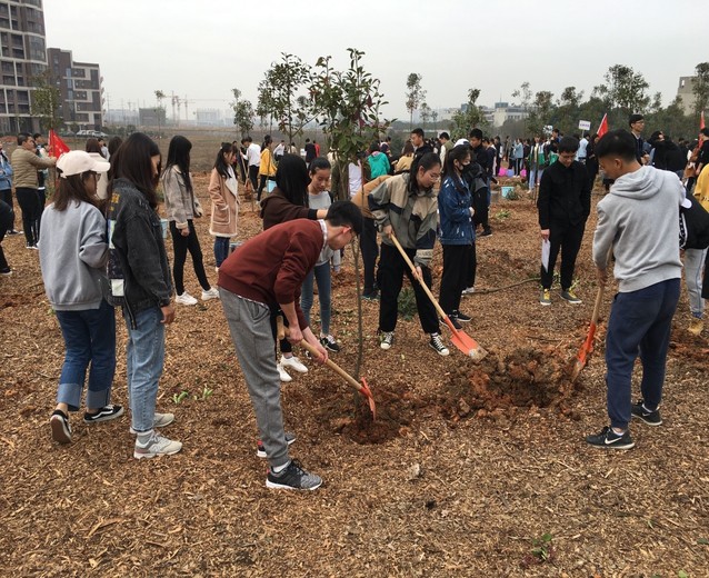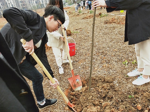 活动开始,全体成员在花房集合。校领导代表、招商银行武汉分行代表、低碳学院学生代表依次上台发言,共同表达了生态文明建设责任重大、经济可持续的必要性及秉承校训共建美丽校园的主题。领导和代表们的发言,让在场教师和学生都认识到环保的重要性,激励各位成员参与植树的积极性。活动中,各团队分工合作,拿锹铲土、提水浇树,整个过程井井有条。苗木种植完成,各团队拍照留念,共同记下这美好的一刻。