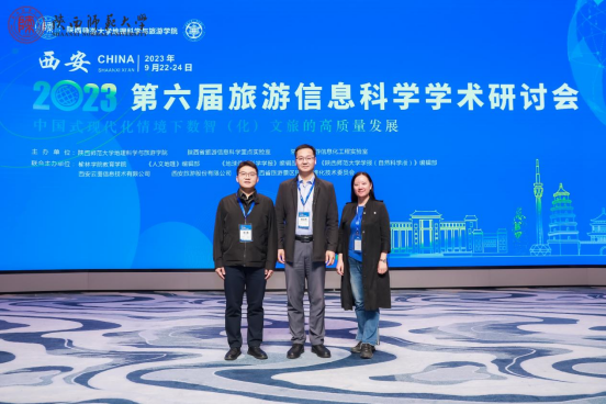 (供稿:陈立双,审核:毛焱)为了更好地服务中国式现代化发展目标,推动旅游信息科学理论创新发展,9月22日至24日第六届旅游信息科学学术研讨会在西安召开,会议由陕西师范大学地理科学与旅游学院主办,来自国内外高校和企业的近200位代表参加。我院蒋昕和陈立双两位副院长与信息管理学院郑路博士参加会议。