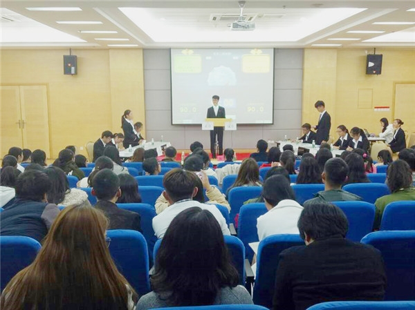 本次辩论赛围绕“宽松式管理对大学生利大于弊还是弊大于利”的主题展开辩论。在两院辩论队辉煌历史、历年赛事以及队员介绍视频展示后比赛正式开始。正方是法学院的“微判队”,反方是旅游与酒店管理院的“全场都爱我们队”。首先双方一辩用具有高度概括性的陈述为本场辩论开篇立论。反方四辩陈萧羽思路清晰地盘问了正方“宽松的标准及宽松程度的界定”先发制人,激起紧张气氛。然后双方二辩就对方一辩稿中的漏洞反驳,反方二辩孔德威以其灵活的思维和缜密的逻辑推理,不时的赢得场下阵阵掌声。比赛进行过程中八位辩手旁征博引妙语连珠,特别是到了比赛的第四环节自由辩论阶段,双方展开激烈的辩论。正方二辩和正方三辩重申本方观点并对反方提出质疑,反方辩手们一次一次化险为夷,个个击破对手的观点,其中反方三辩蒋思雨精准地回答了正方“宽松式管理是不是不管理”的质疑,掀起了决赛的高潮。最终,双方四辩在总结陈词环节纵观全局,铿锵有力又思维缜密,以坚定的总结为本场比赛收官。