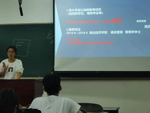 秋招正在如火如荼的进行,通过简历制作主题晚讲评,激励学生做出职业选择,积极投身秋招,带着自己最好的简历,赢得心仪的offer。