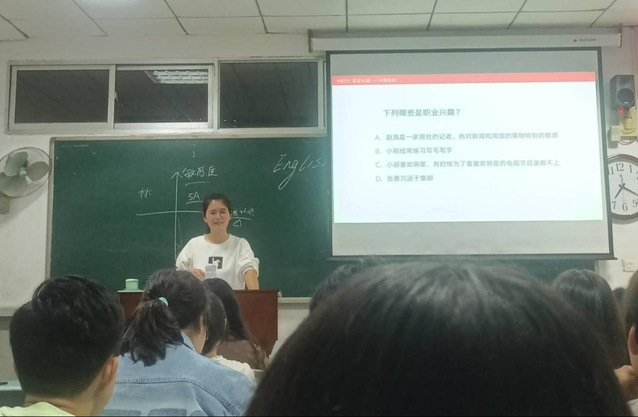 (供稿:李鸽 郑红红 摄影:钟雪杏 审核:孙浩)9月24日下午,旅游类2241、2242班围绕“职业兴趣和选择”开展主题晚讲评,帮助二年级学生认识自我,明确目标,培养职业兴趣,做好职业生涯规划。班主任李鸽主讲。