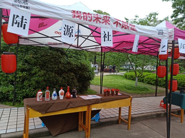 本次酒文化节开幕式摆点的主体是进行酒展示和酒知识讲解。4月11号,陆源社展出的主要是中国传统酒,即具有代表性的白酒与黄酒,白酒具体有茅台(酱香型)、泸州老窖(浓香型)、汾酒(清香型)、桂林三花酒(米香型);展出的黄酒是具有知名度的绍兴黄,主要包括元红、加饭、花雕、香雪。4月12号,展出的主要是外国洋酒,有威士忌、朗姆、金酒、白兰地以及啤酒。啤酒包括浅啤、棕啤、黑啤、果啤。