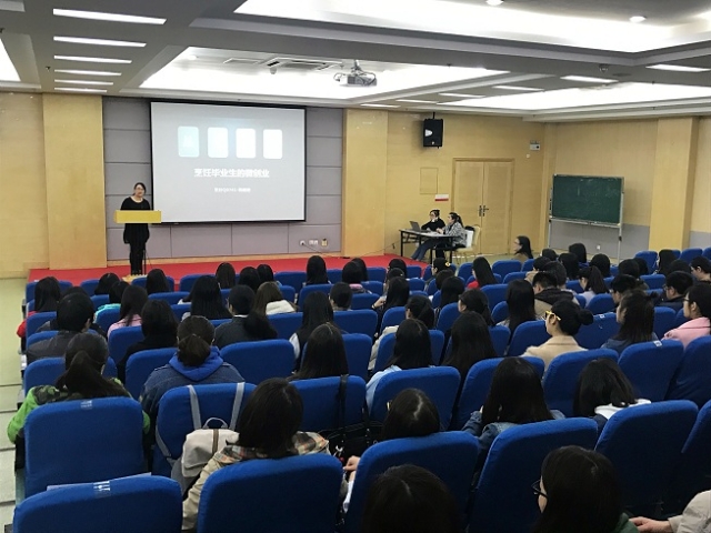 肖晓艳以她大学期间兼职打工、摆摊销售的经历作为开场,期间引用多个真实微创业案例,向同学们介绍了时下最新的微创业运营模式。肖晓艳语言幽默睿智、与同学们互动有加。她说,多面通一面精的知识储备、沉着积极的工作态度、良好的思想品德、灵活的人际交往能力和一个千载难逢的好机会都是一个成功者诞生的必要条件。她希望同学们能够努力地尝试,不断挑战自己,探索未知领域,坚定不移的走下去,从而获得成功。在问题解答环节,同学们积极提问,肖晓艳也一一给出精彩解答。